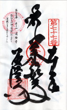 道隆寺 <四国八十八ヶ所> 弘法大師御誕生 千二百五十年 第七十七番 香川県仲多度郡 多度津町北鴨1−3−30